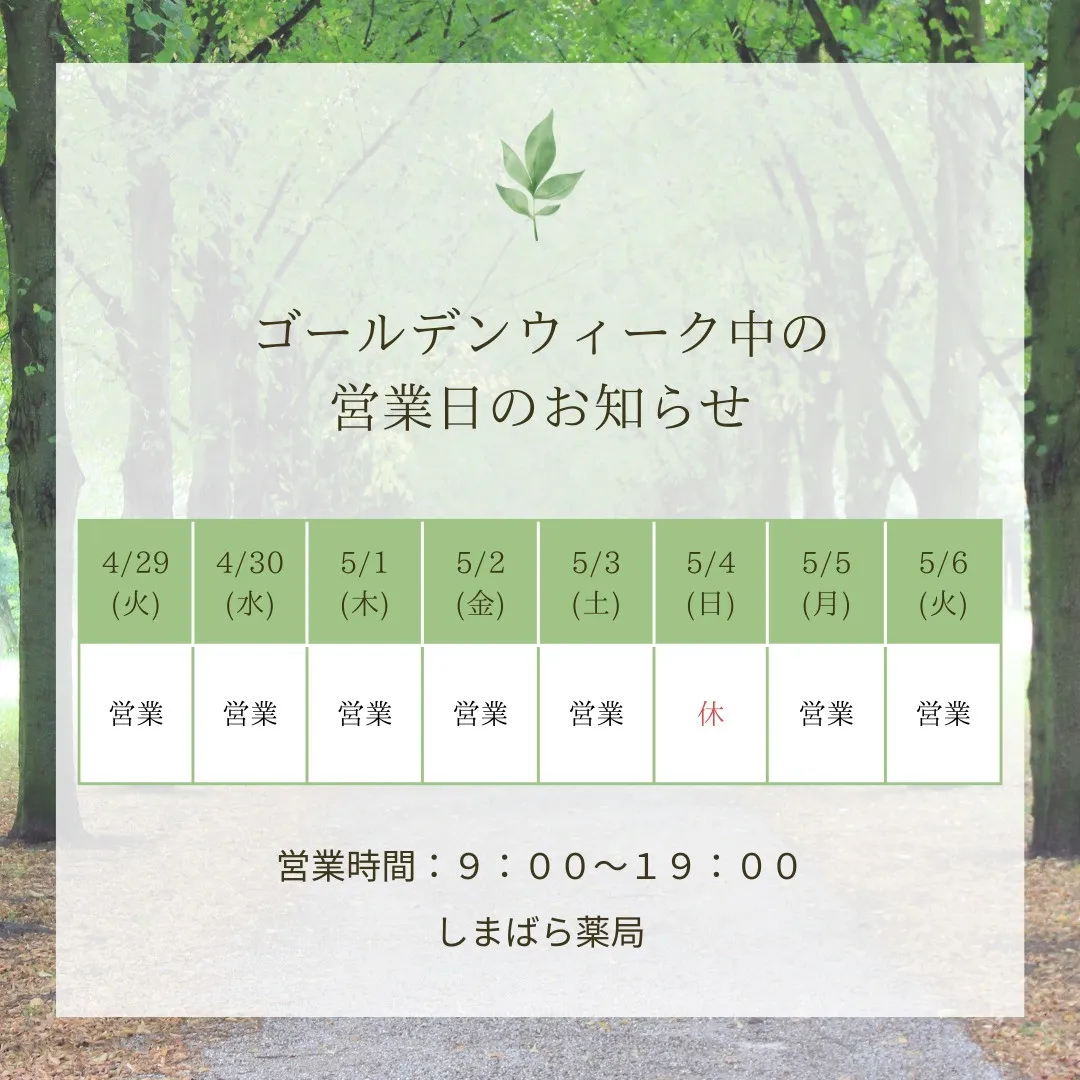 . 【GW営業日のお知らせ】 しまばら薬局はGW中も通常通りの営業です✋😄 ご相談お待ちしておりま~す! #しまばら薬局 #島原 #漢方相談